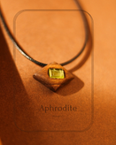 گردنبند سنگ زبرجد و چوب گردو بند چرمی