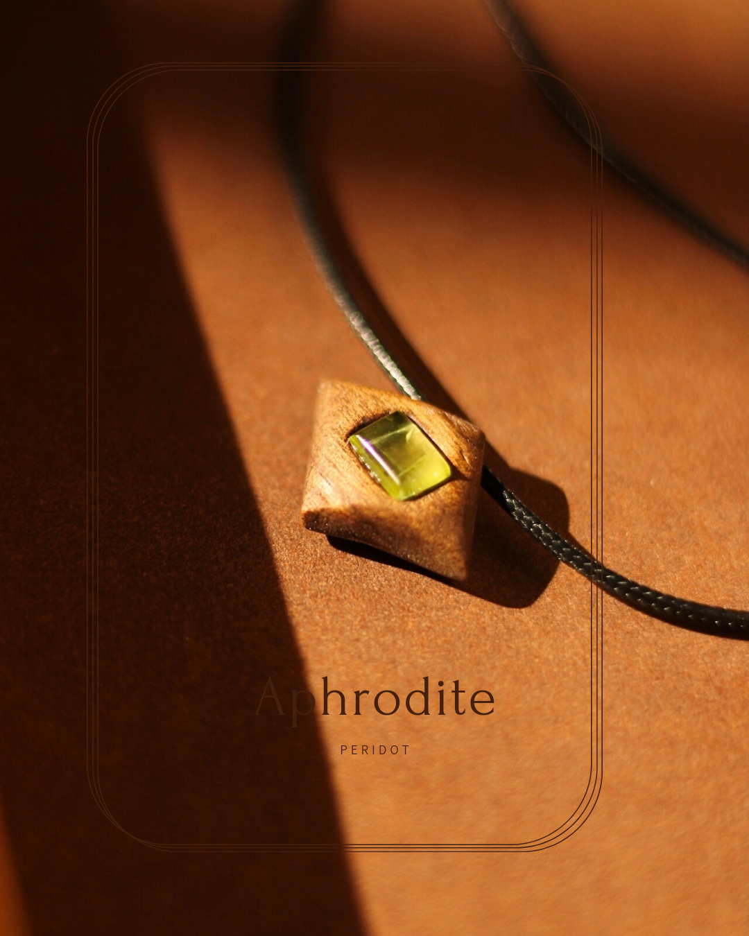 گردنبند سنگ زبرجد و چوب گردو بند چرمی
