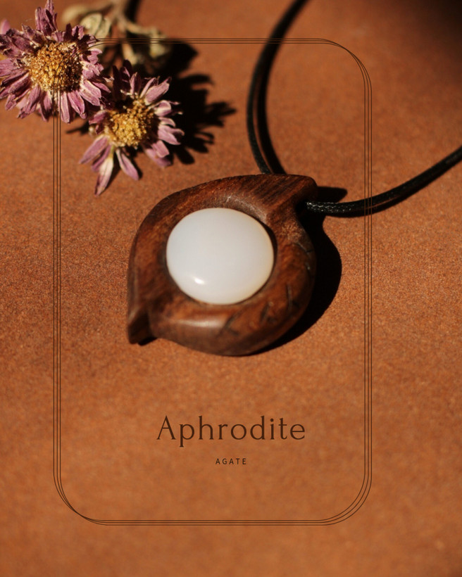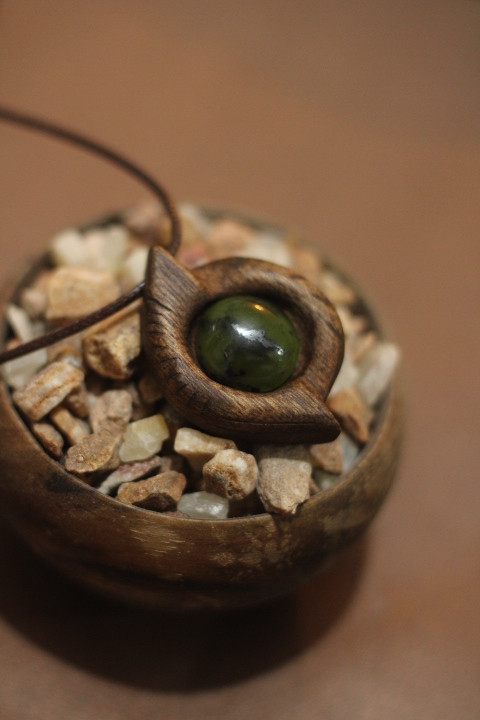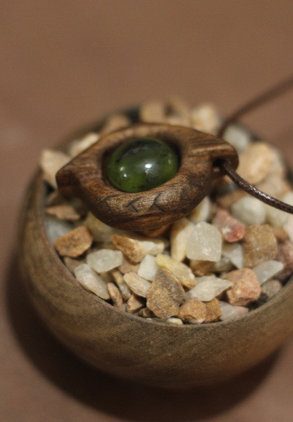گردنبند سنگ عقیق و چوب گردو طرح پرواز