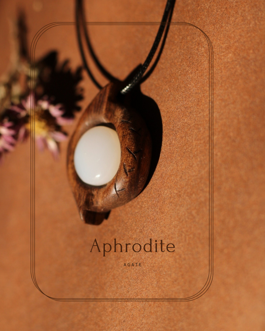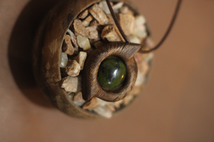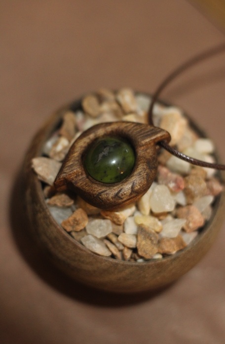گردنبند سنگ عقیق و چوب گردو طرح پرواز
