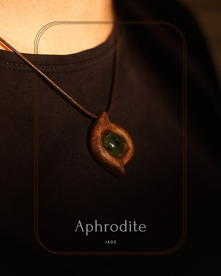 گردنبند سنگ یشم و چوب گردو (طرح پرواز)