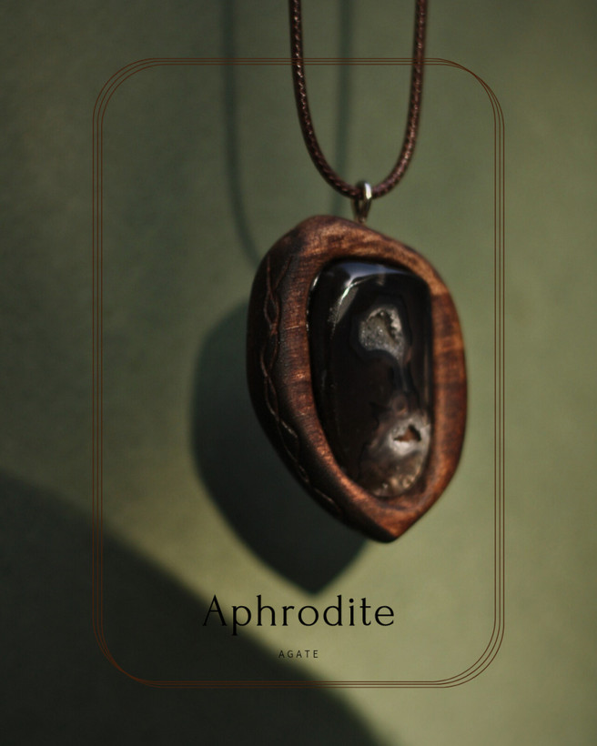گردنبند چوب گردو و سنگ عقیق ژئود دار