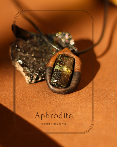 ناموجودگردنبند سنگ زبرجد و چوب گردو بند چرم مصنوعی