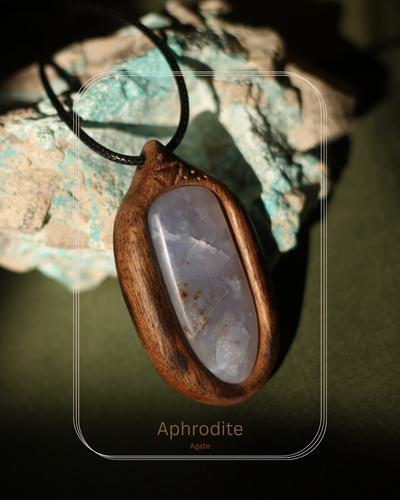 گردنبند سنگ عقیق و چوب گردو بند چرم طرح قاب و آینه