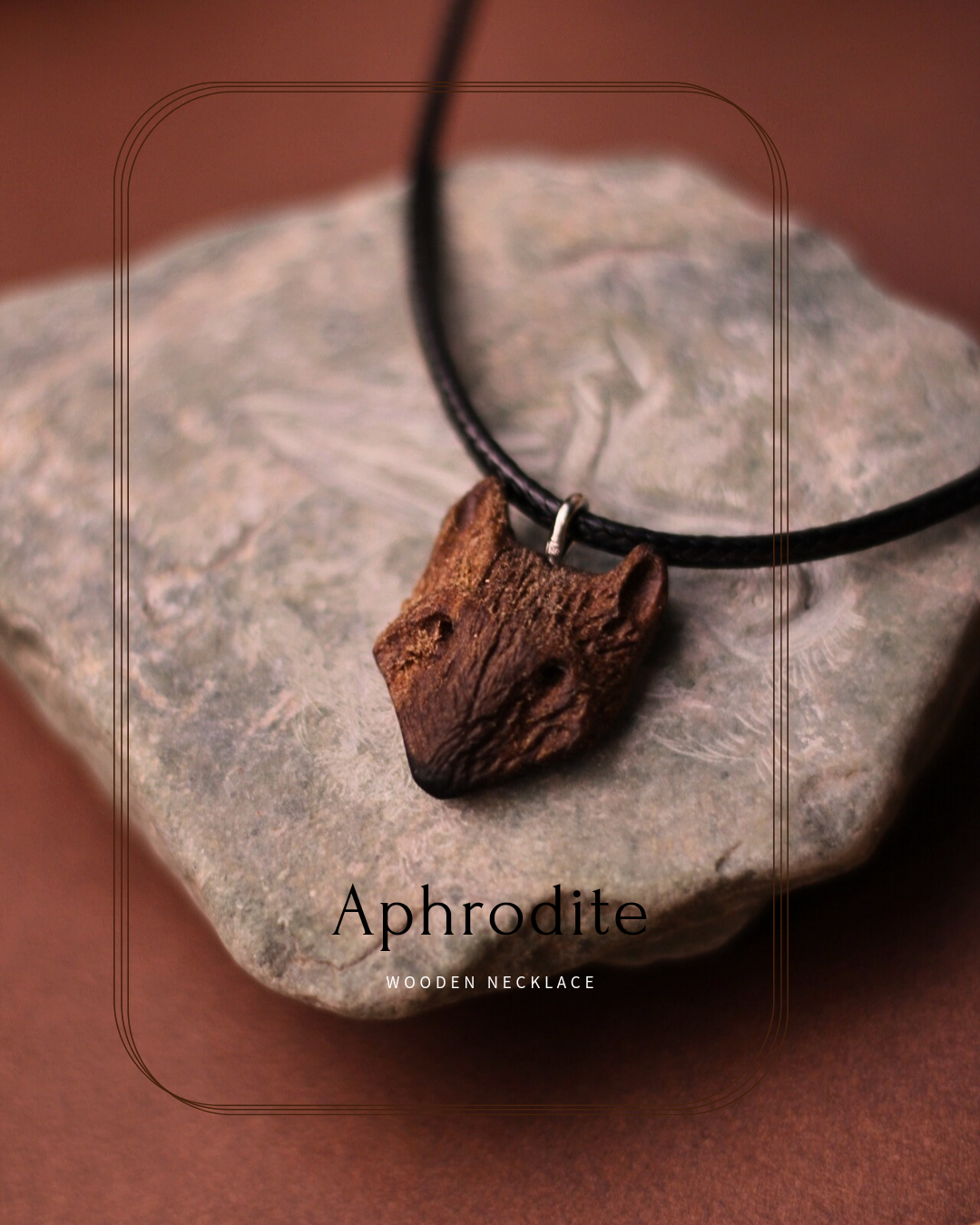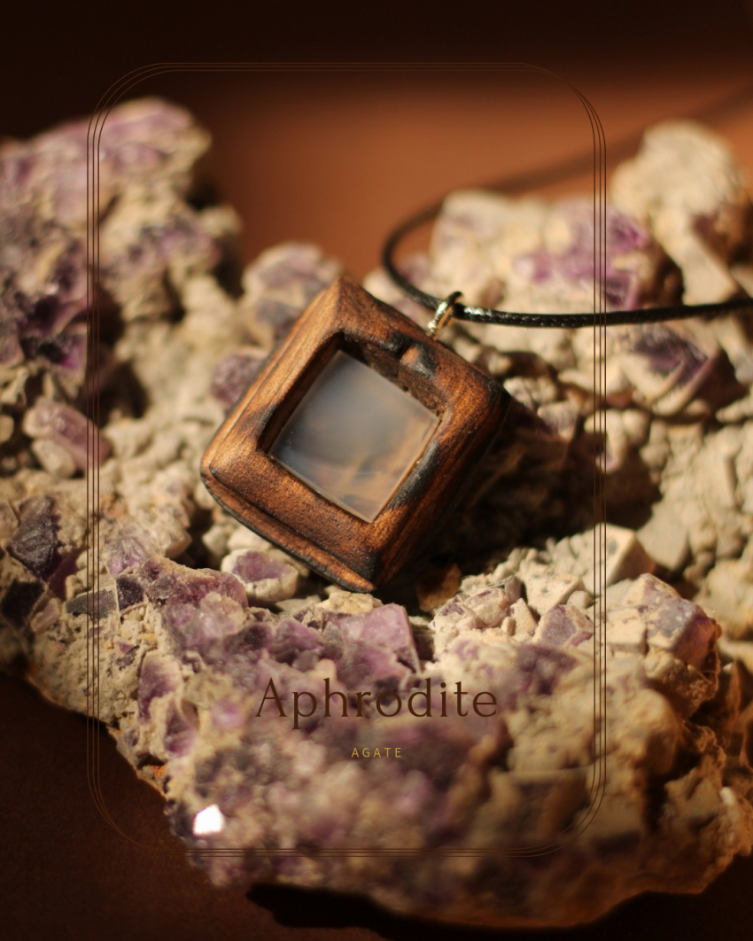 گردنبند سنگ عقیق و چوب گردو بند چرم طرح قاب و آینه