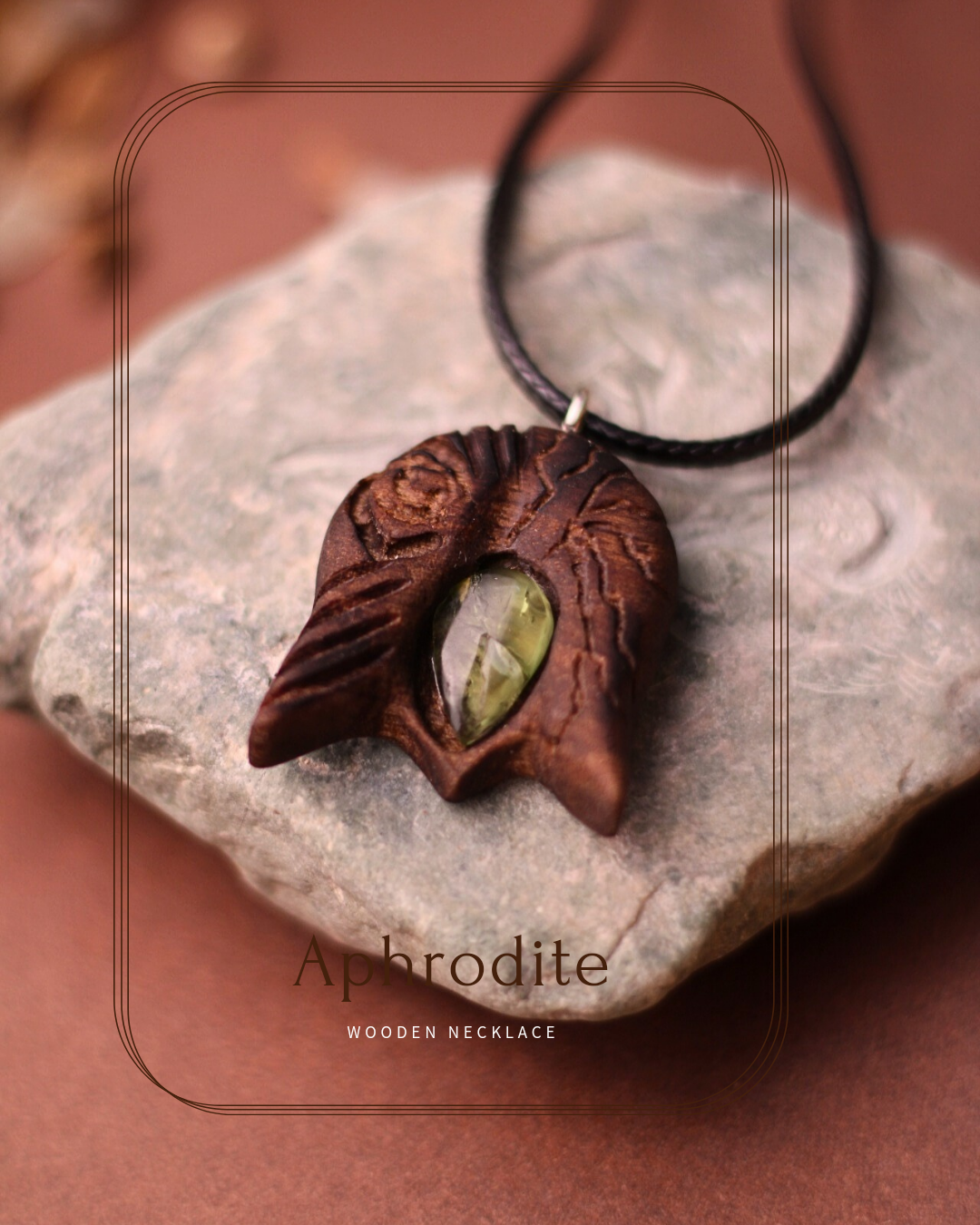 ناموجودگردنبند سنگ زبرجد و چوب گردو بند چرم مصنوعی