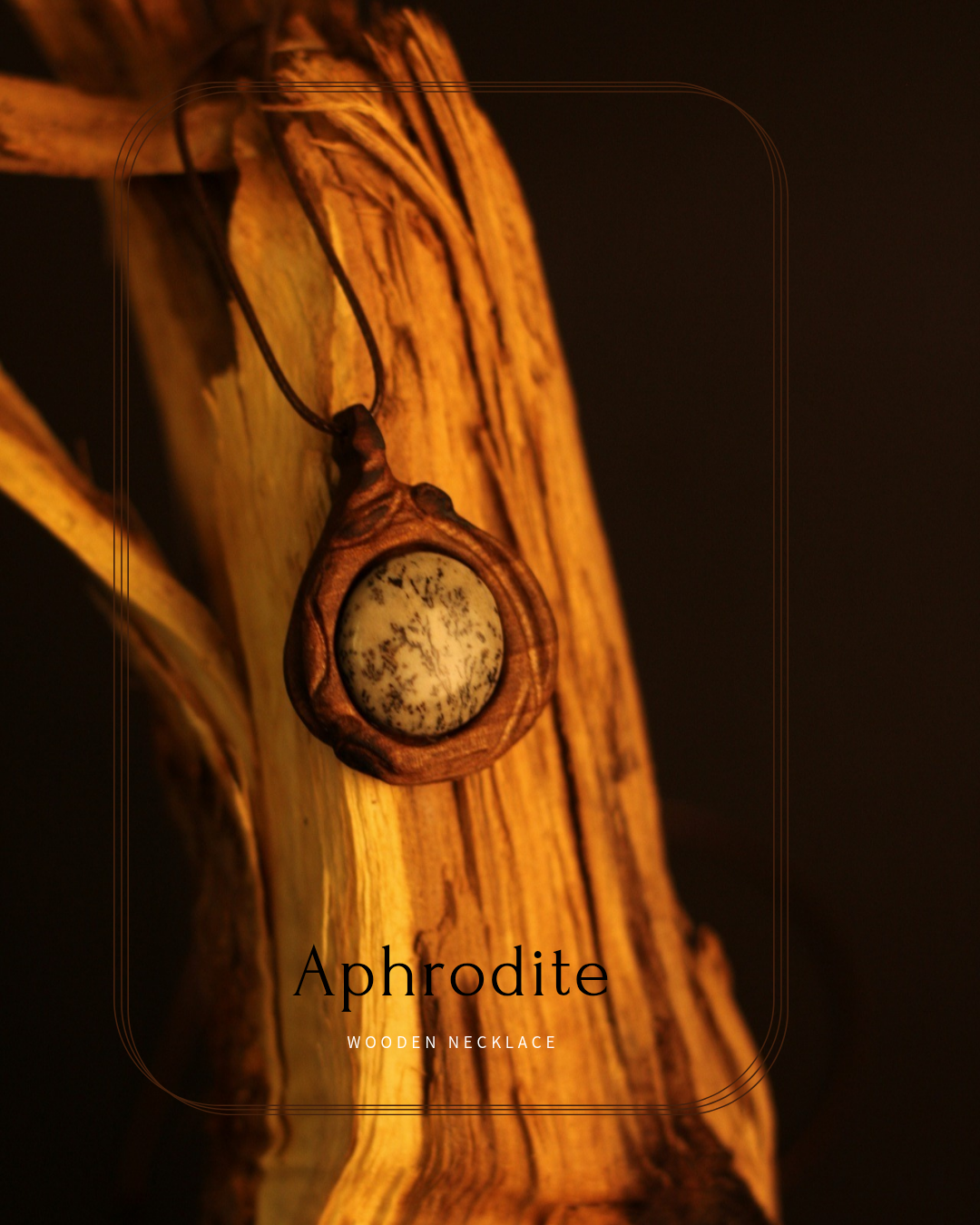 گردنبند چوب گردو و سنگ عقیق سلیمانی ژئوددار
